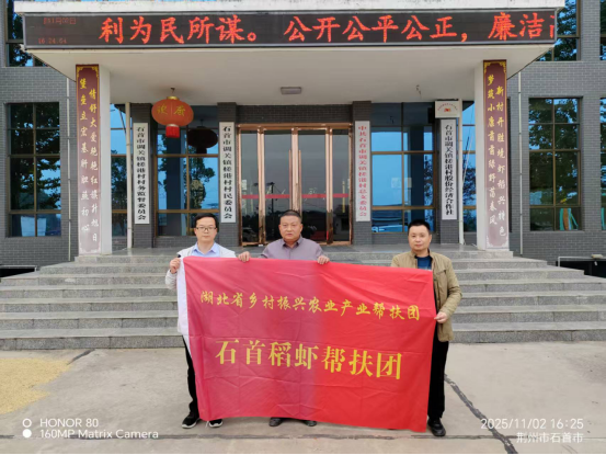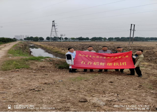 2025年11月2日,长江大学动物科学技术学院副院长、第十八产业帮扶团专家苏应兵,帮扶团专家易提林副教授,学院特聘教授陈峰一行,赴石首市开展虾稻产业专项帮扶活动。石首市地处江汉平原与洞庭湖平原结合部,依托优质江河湖资源形成特色虾稻产业,2024年小龙虾养殖面积达39万亩、产量5.51万吨,位居全国第十,此次帮扶恰为当地产业升级送来“及时雨”。石首市科技局副局长杨敏、调关镇槎港村党总支书记杨炎华、湖北鑫水农商贸有限公司、荆州市仁人虾生态养殖专业合作社社长胡超及槎港村万亩虾稻养殖基地大户龚家明等热情接待并陪同调研。