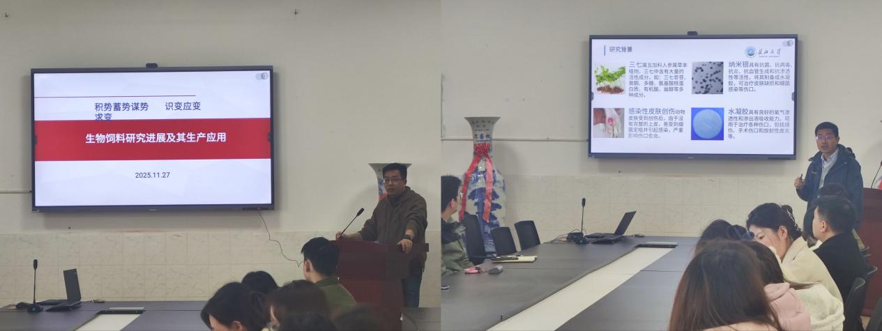 2025年11月27日下午2:30,动物科学技术学院第十二期“求实导师学术沙龙”在第五教学楼1005会议室顺利举行。本期沙龙聚焦前沿应用研究,张付贤与田光明两位老师分享了创新成果。