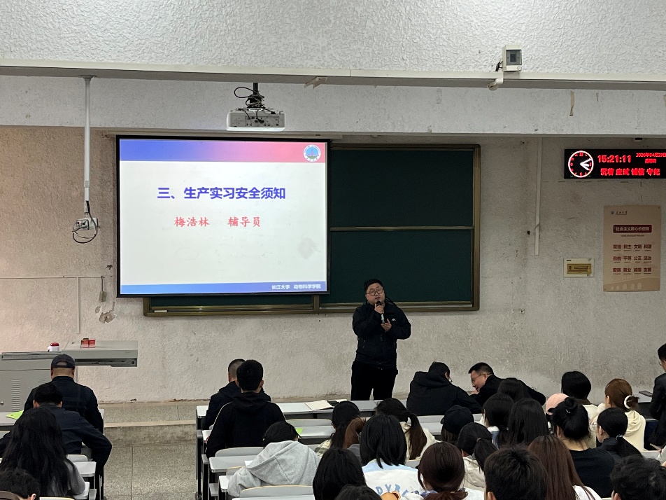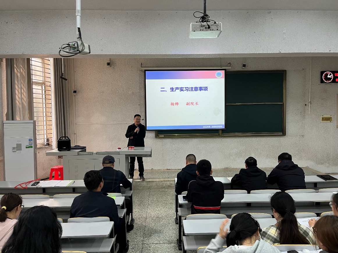 为引导2023级本科生树立正确的实习态度、提升职业能力,为高质量完成实习任务打下坚实基础,动物科学技术学院动物医学系于4月23日下午在五教103召开2023级动医、动科专业生产实习动员大会。学院副院长杨烨、辅导员梅浩林、动医系与动科系实习指导教师及2023级动医、动科系全体学生参加会议。会议由动医系主任汪招雄主持。 杨烨副院长作实习动员讲话。他详细介绍了本次实习的对象、内容、形式及具体要求,帮助同学们全面了解实习安排。杨烨强调,实习是将理论知识应用于实践的关键环节,希望同学们珍惜宝贵机会,培养吃苦耐劳、爱岗敬业的职业品质,在实践中积累社会经验,不断拓展专业视野、提升专业能力、培育专业精神。他勉励大家以本次实习为起点,将理论与实践融会贯通,提升发现问题、分析问题和解决问题的能力,开启职业生涯的新篇章。 辅导员梅浩林老师重点强调了人身与财产安全问题。他叮嘱同学们严格遵守实习单位规章制度,无特殊情况不单独外出,最好结伴而行,始终把安全放在首位。他还提醒注意防火、防盗、防诈骗、防蚊虫,不随意下陌生水域游泳,关注饮食安全,并主动学习企业对生产安全的管理措施,提前识别并防范安全隐患。 最后,汪招雄主任从沟通技巧、实习纪律、人身安全、专业能力等方面对同学们进行了系统培训,并对实习时间、实习单位、任务分工、过程管理及考核评价等具体事项作了详细说明,确保大家能够高质量完成实习任务。他要求同学们正确认识就业形势,摆正心态,找准定位,迅速完成从学生到实习者的角色转换;严守纪律,注意安全,团结互助,珍惜实习机会,练就过硬本领,为今后就业打下扎实基础。 会后,同学们纷纷表示,将珍惜本次实习机会,服从安排,严守纪律,虚心学习,勇于担当,以优异成绩完成从学生到企业员工的角色转变。 (编辑 张健淞 审核 杨烨)