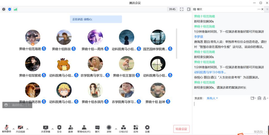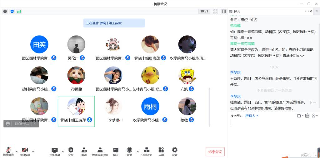 (通讯员:范海璐 刘雨双)为增强个人演讲能力,提高临场发挥水平,4月3日晚7时,动科学院第二期青马学习小组在线上旁听校青马班霁晓十组的即兴演讲交流会。此次活动邀请到的评委有第十六期校青马班学生辅导员孙振艳、吴伦广以及动物科学学院学生会主席王珏,园艺园林学院和农学院的青马小组一同旁听学习,并由霁晓十组组长范海璐主持。