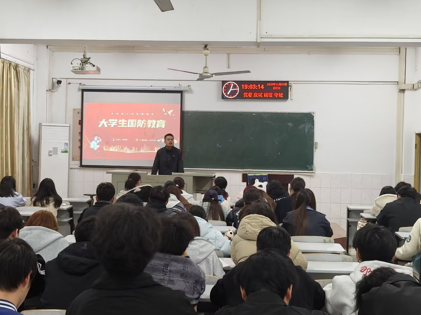 为深入学习贯彻党的二十大精神,扎实推进全民国防教育,11 月 9 日下午,长江大学动物科学技术学院成功举办 “新时代大学生国防教育” 专题讲座,旨在增强青年学子国防意识,厚植爱国主义情怀,引导大学生将个人理想融入国家发展大局,同时面向学子开展征兵政策宣讲与参军动员。