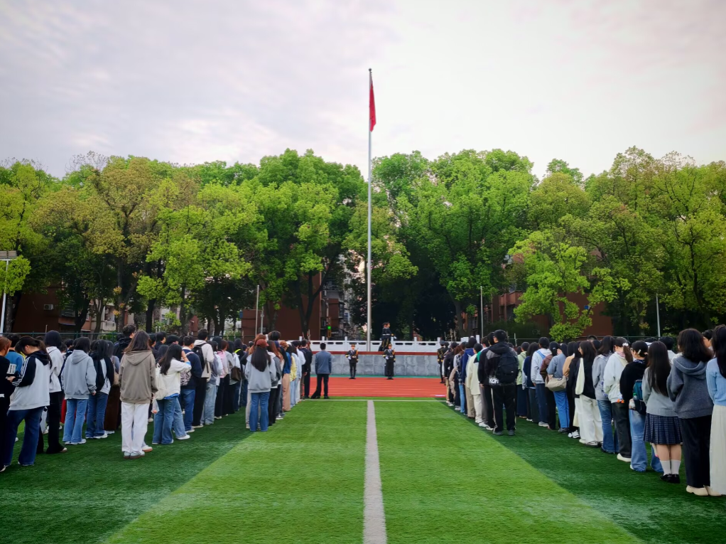 2026年4月13日清晨,长江大学动物科学技术学院全体师生于校园操场举行升旗仪式。 7点整,升旗仪式正式开始。国旗护卫队迈着整齐的步伐护送国旗至升旗台,伴随着响亮的《义勇军进行曲》,五星红旗冉冉升起,全体师生肃立行注目礼,现场气氛庄严肃穆。 升旗仪式结束后,韩琳萱同学作为学生代表作国旗下讲话。她号召同学们珍惜大学时光,将个人理想融入国家发展,在专业学习中锤炼本领,用实际行动践行新时代青年的使命担当。教师代表梅浩林以《学会与万物对话》为主题进行发言,他强调,与万物相处的核心是尊重共生、坚守权责,呼吁大学生将专业蕴含的生命敬畏与权责理念融入校园生活,以文明举动践行与万物和谐相处的理念。 本次升旗仪式不仅是一次深刻的爱国主义教育,更是一次精神的洗礼,更加激励着动物科学技术学院的学子们以饱满的热情投入到未来的学习与生活中。 (审核 孙恺| 编辑 李世鹏 胡洁 宋宇航)